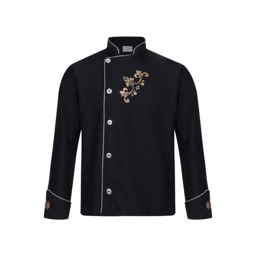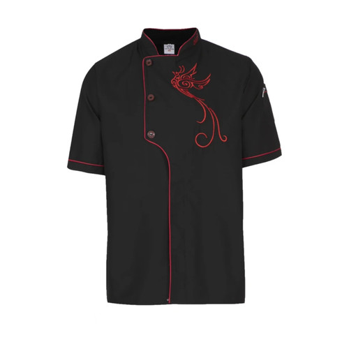 روپوش آشپزی مشکی و سفید آستین کوتاه گلدوزی دار