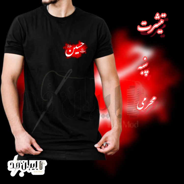 تیشرت تمام پنبه مشکی محرمی چاپ دار یقه گرد استین کوتاه سایز مدیوم تا دوایکس لارج کد 11