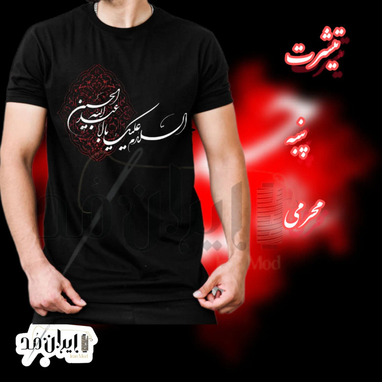 تیشرت تمام پنبه مشکی محرمی چاپ دار یقه گرد استین کوتاه سایز مدیوم تا دوایکس لارج کد 10