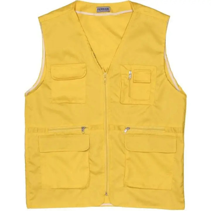 جلیقه خبرنگاری سایز بندی لارج تا دوایکس لارج زیپ دار و جیب دار رنگ زرد