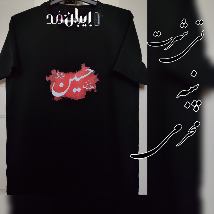 تیشرت تمام پنبه کیفیت عالی آستین کوتاه یقه گرد چاپ محرمی سایز بندی مدیوم تا دو ایکس لارج