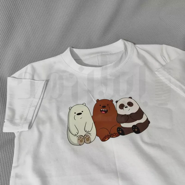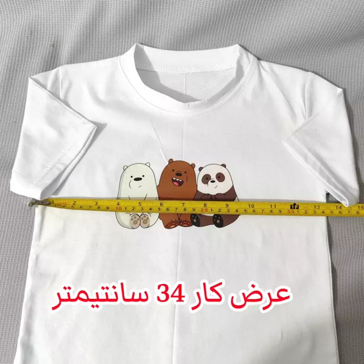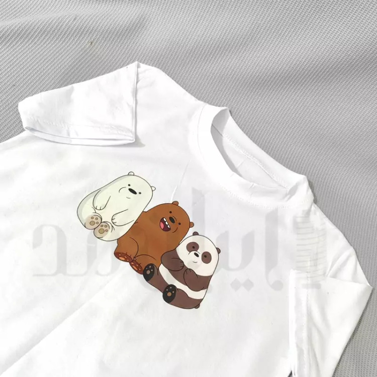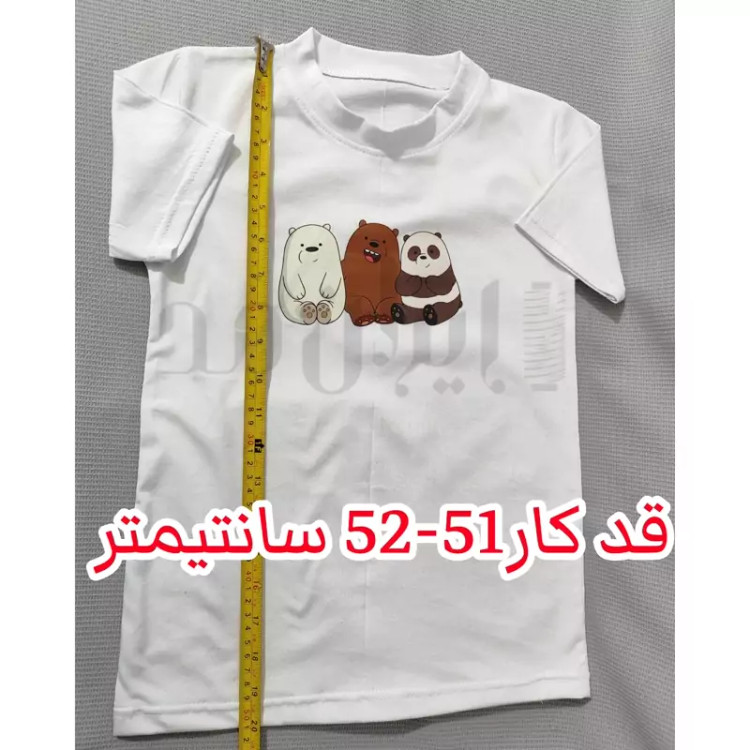 تیشرت پنبه درجه یک با چاپ خرس های کله فندقی کیفیت عالی مناسب 4-6 سال رنگ سفید یقه گرد آستین کوتاه
