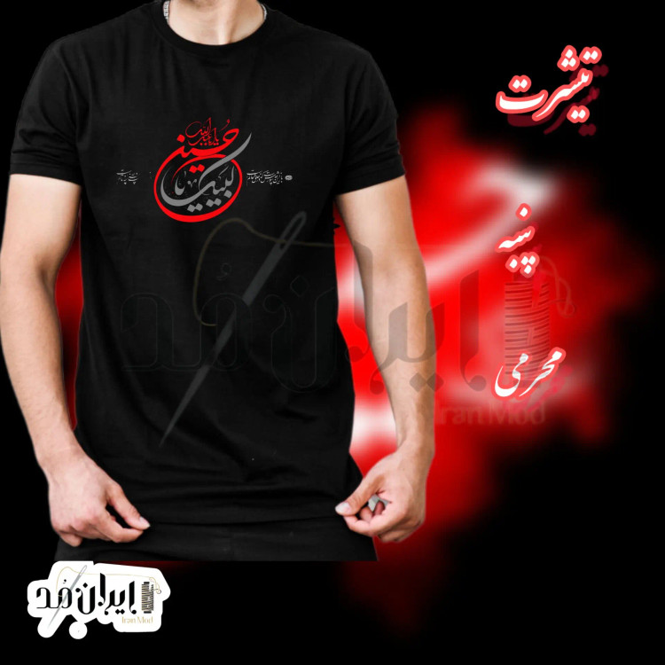 تیشرت تمام پنبه کیفیت عالی آستین کوتاه یقه گرد چاپ محرمی سایز بندی مدیوم تا دو ایکس لارج