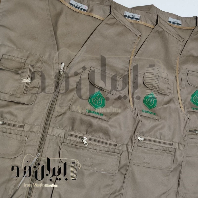 جلیقه خبرنگاری ومهندسی کرم -خاکی (چاپ طرح اختصاصی)